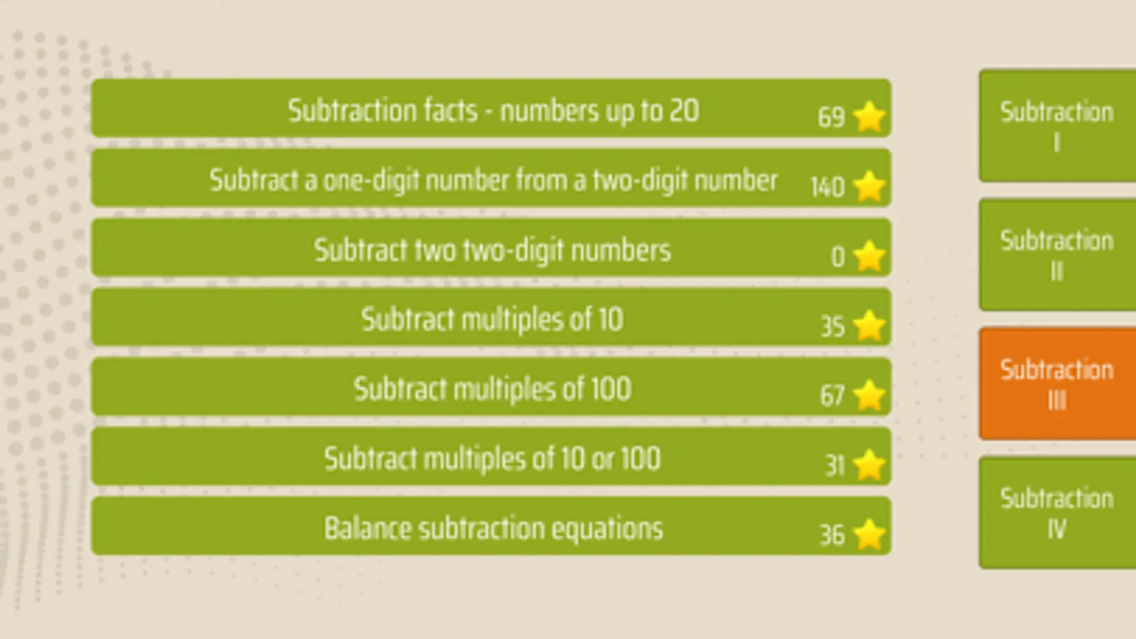Subtraction facts - numbers up to 100