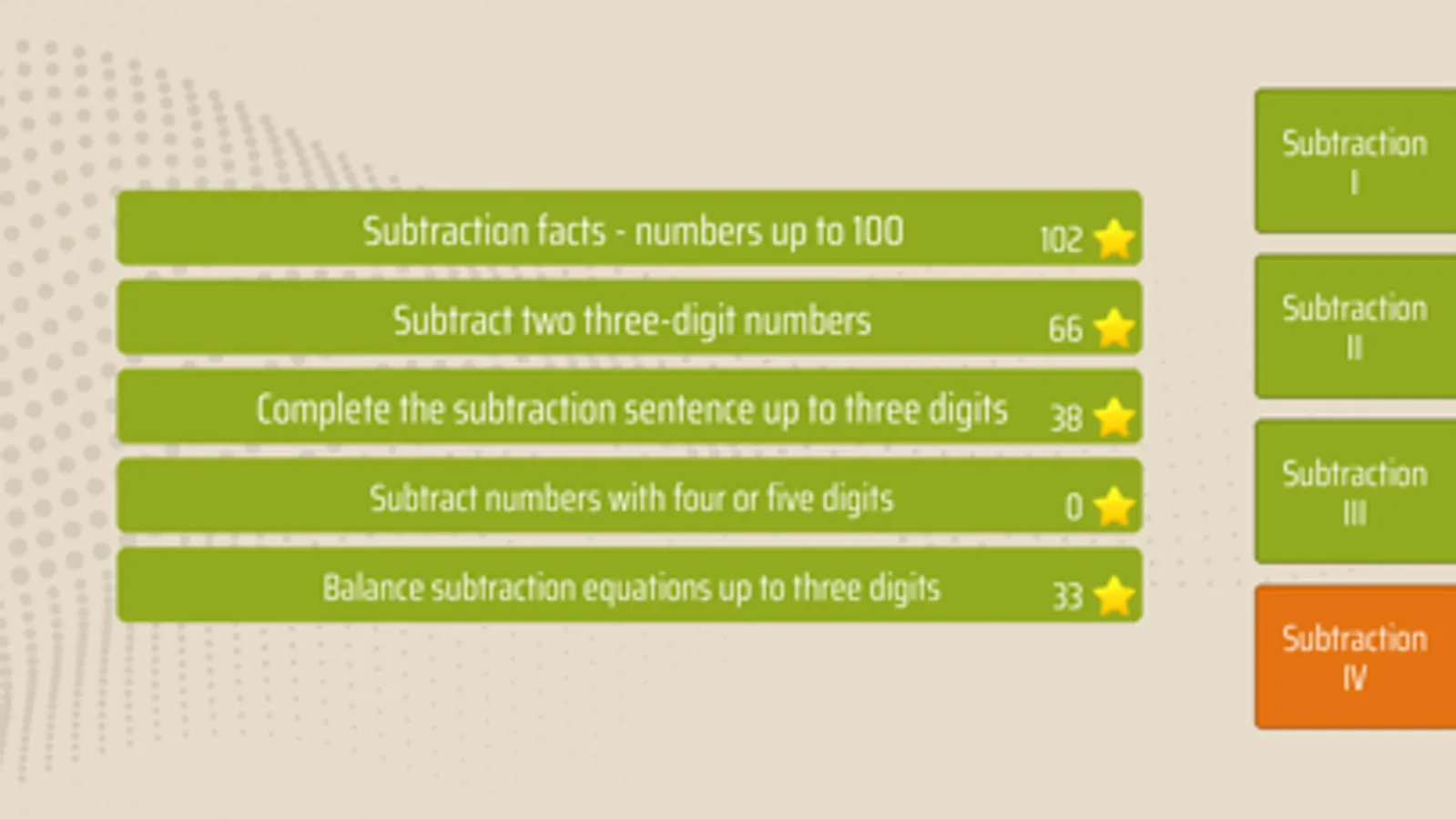 Balance subtraction equations up to three digits