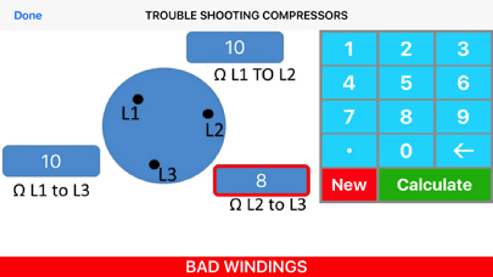 Compressor windings troubleshooter with “acceptable resistance” or “unacceptable resistance”