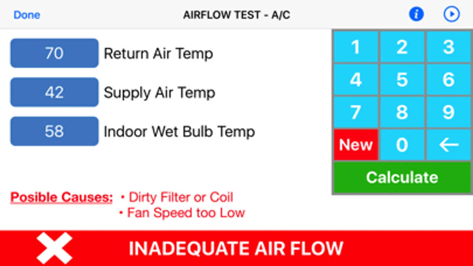 Superheat & Subcooling charging of all the popular refrigerants on the market with on screen corrective action including “add refrigerant” or “remove refrigerant” based on the specific conditions entered