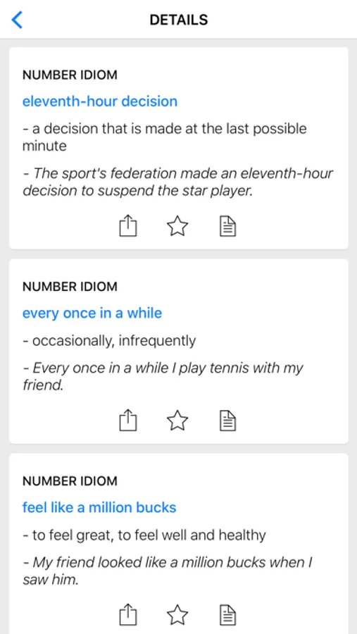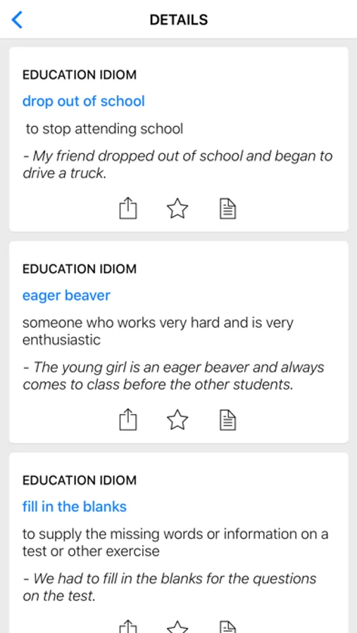 This app contains commonly used English idioms about number and education.