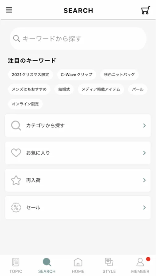お目当てのアイテムがすぐみつかるようサーチ機能を充実させました。