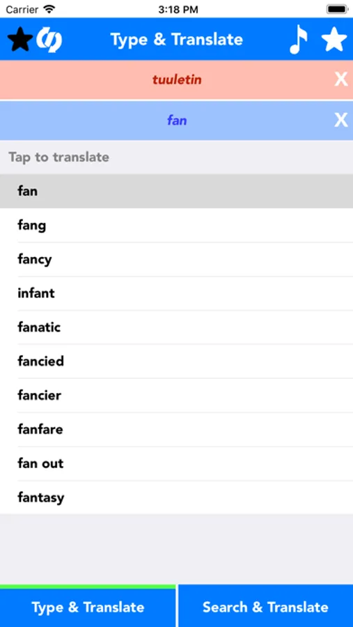 Look up default English to Finnish or Finnish to English sentences and phrases or manually type your own English to Finnish or Finnish to English words and sentences with a few clicks.