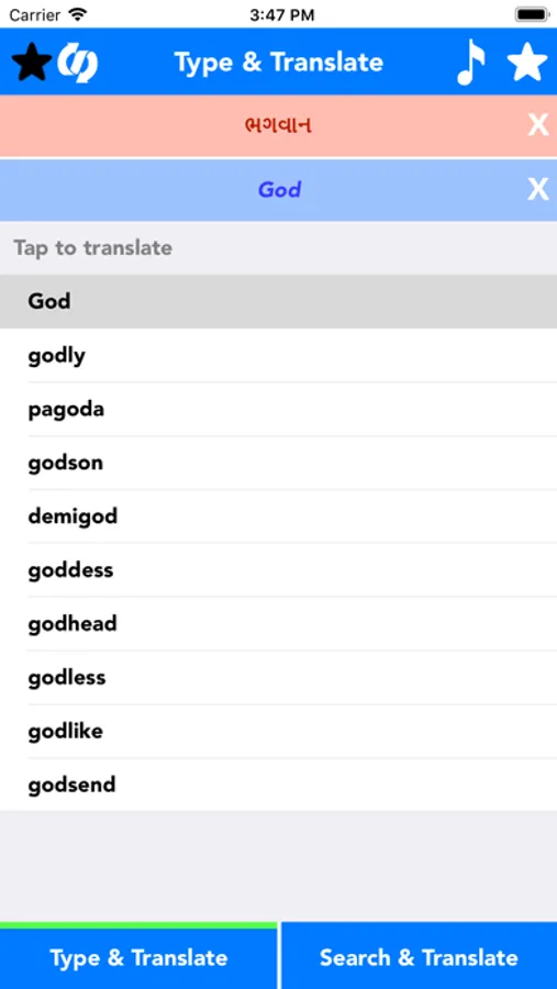Look up default English to Gujarati or Gujarati to English sentences and phrases or manually type your own English to Gujarati or Gujarati to English words and sentences with a few clicks.