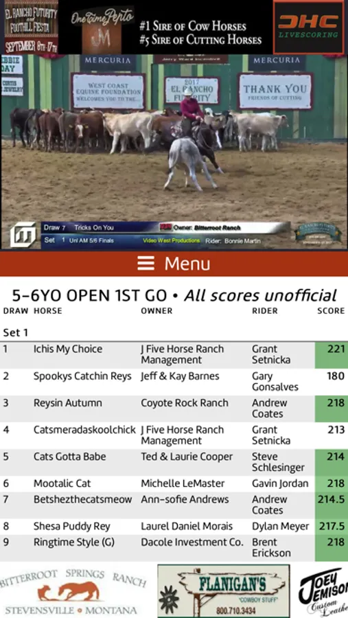CHC Livescoring provides instant scores, leaderboards and video for major NCHA cutting horse events. The app allows you to keep in touch with what’s happening at the shows and let you know exactly where they are at in the draw, live.