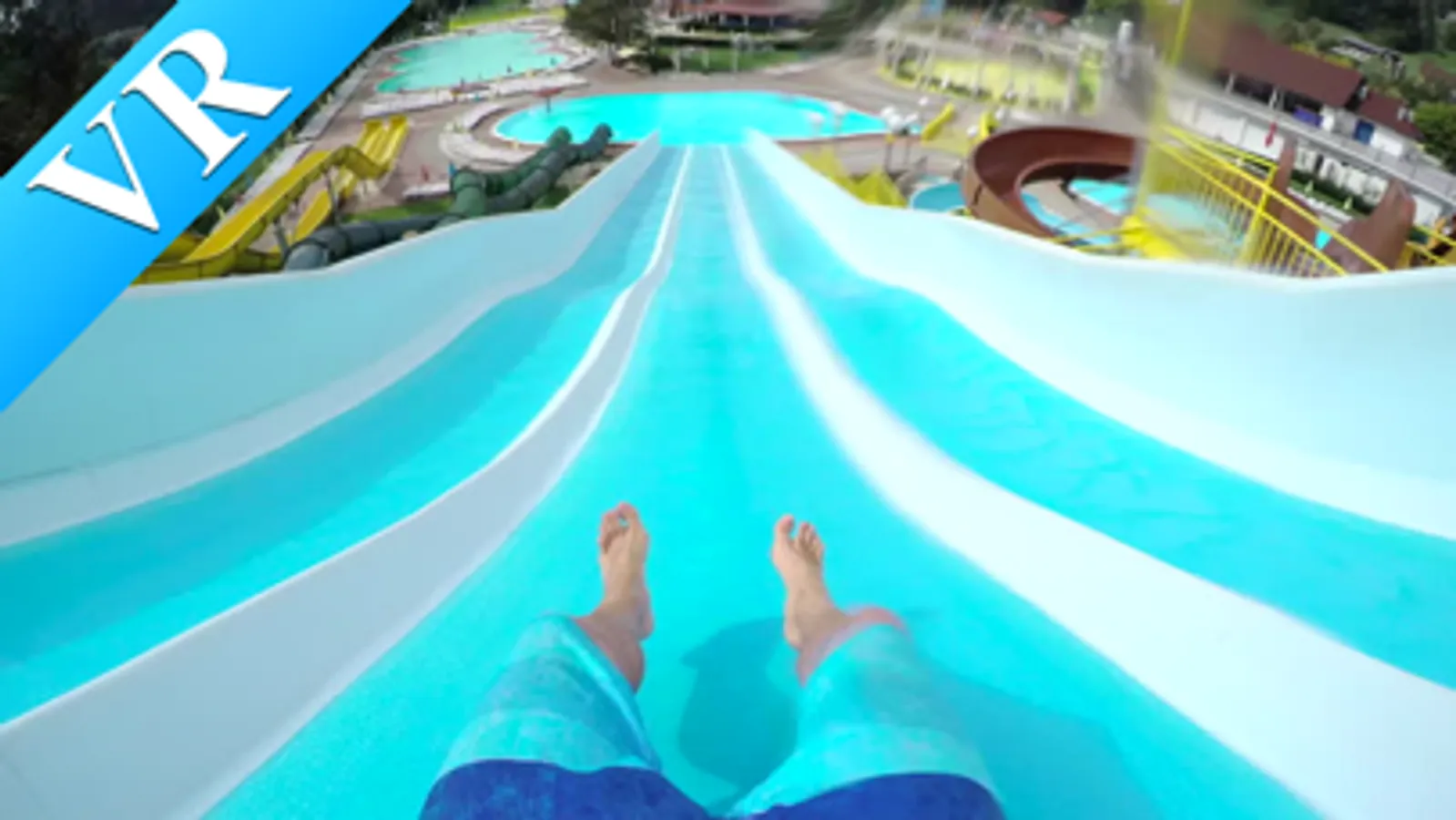Use your virtual reality headset to take a ride on a high definition water park water slide.