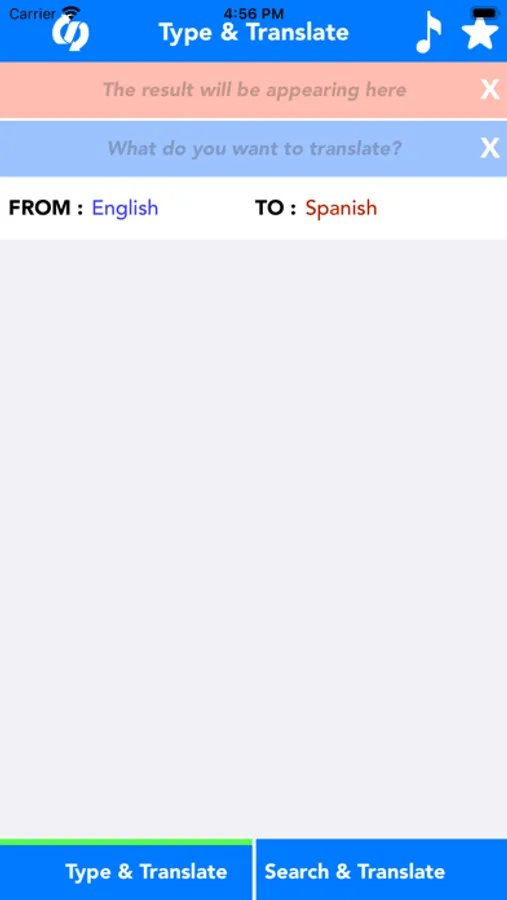 Look up default English to other language sentences and phrases or manually type your own English to other language words and sentences with a few clicks.