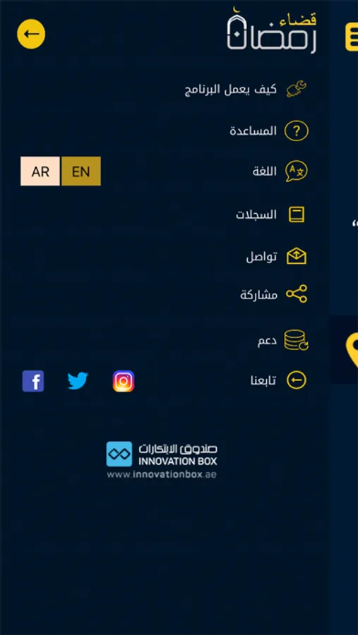 -بعد الإنتهاء من إدخال المعلومات المطلوبة يجب الضغط على مستطيل (حفظ) كي يتم حفظ المعلومات والإنتقال إلى الصفحة الرئيسية بعد إدخال المطلومات المطلوبة وحتى يقوم التطبيق ببدء الحساب ومتابعة القضاء حسب الأيام والخيارات التي تم إختيارها.