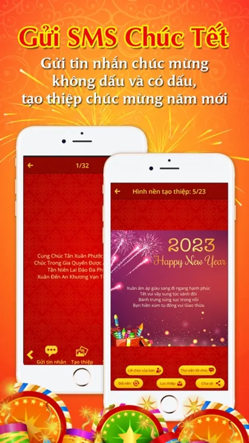 Tải ngay "SMS Chúc Tết - Thiệp Năm Mới" để gửi tin nhắn, những lời chúc tết hay và trải nghiệm các tính năng dành riêng cho ngày Tết.