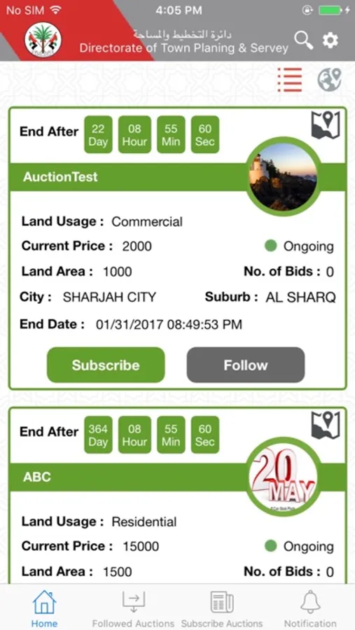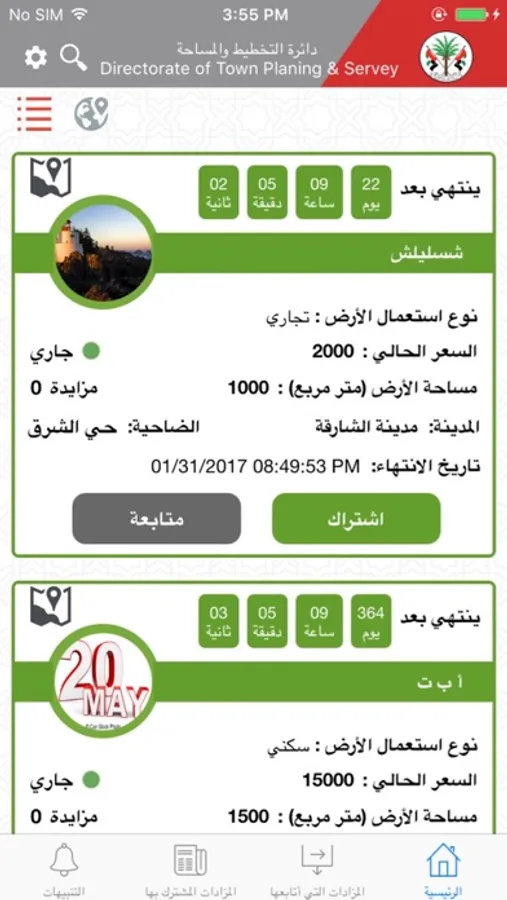 Sharjah Directorate of town planning and Survey Auction System is a center for all auctions listed by SDTPS Public Services for public, SDTPS auction system provide public investors an experience to participate in live bidding for any listed auction.