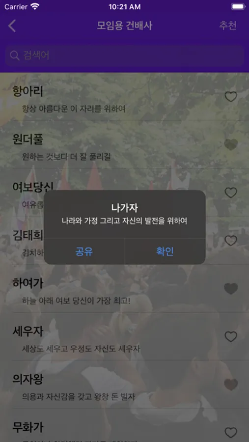 침착하게 '술마셔 건배사'를 키고 건배사를 외쳐보세요.