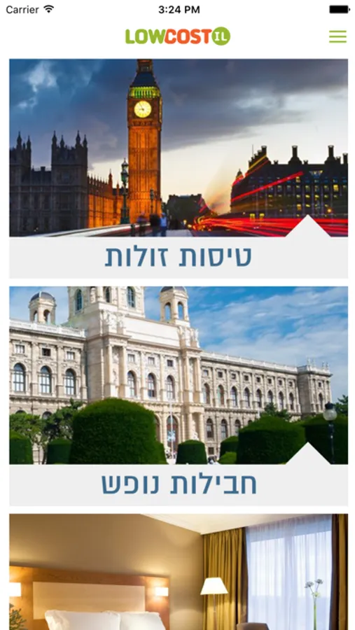 האתר מציע טיסות בזול מכל יעד ולכל יעד של מירב חברות התעופה הזולות בעולם. המרכז הישראלי לטיסות לואו קוסט מגיש לכם מאגר מידע עצום של טיסות בזול באמצעות מנוע חיפוש מיוחד המסונכרן עם חברות הלואו קוסט בזמן אמיתי.