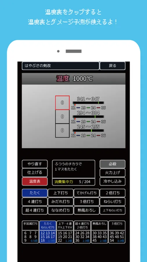 温度表とダメージ予測を使いながら練習することもできます。