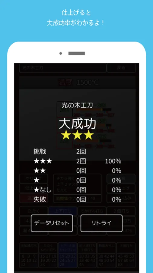 練習した数に応じて大成功率が計算されます。