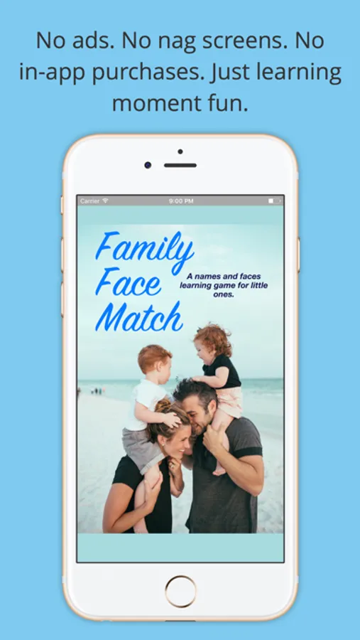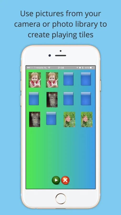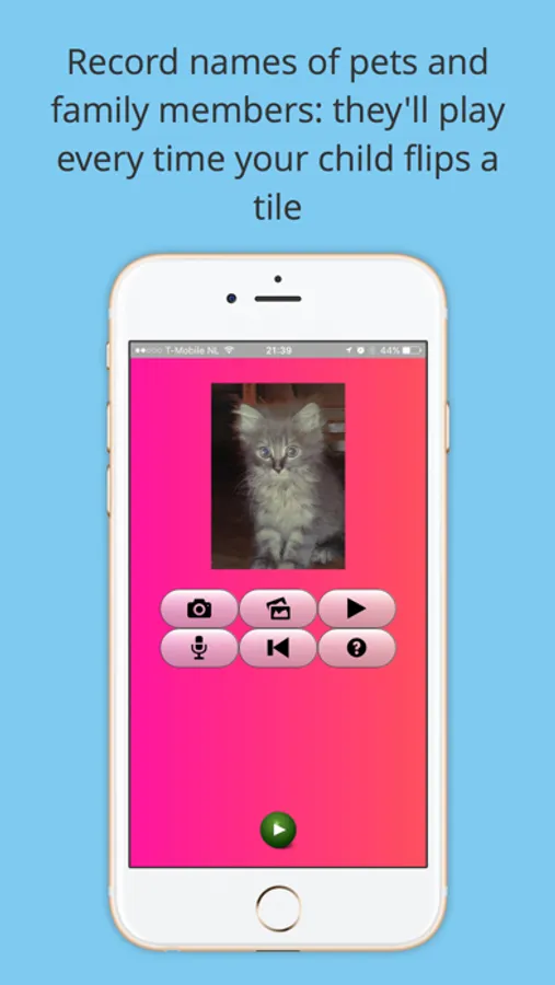 Fun with faces!!! Use your own photos and voice to create tiles in a "concentration" style games. Help your child learn or remember the names and faces of distant loved ones, color names, or names of pets or objects. Create family photo flash cards to help them learn the names of pets, faraway cousins, or neighborhood friends. Or set tiles to pictures of vocabulary-building objects taken with your camera or chosen from your photo library. Record names with the touch of a button.