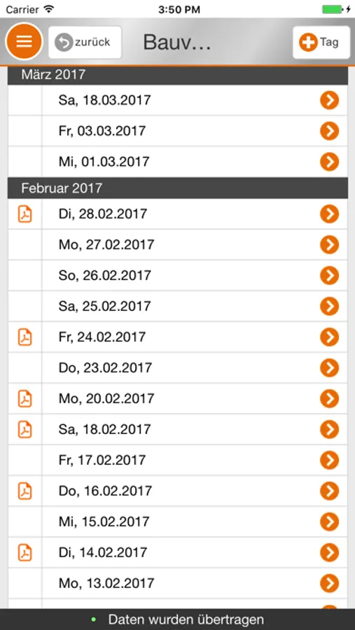 Mit dem Service Bautagebuch können Sie folgende Informationen einfach verwalten: