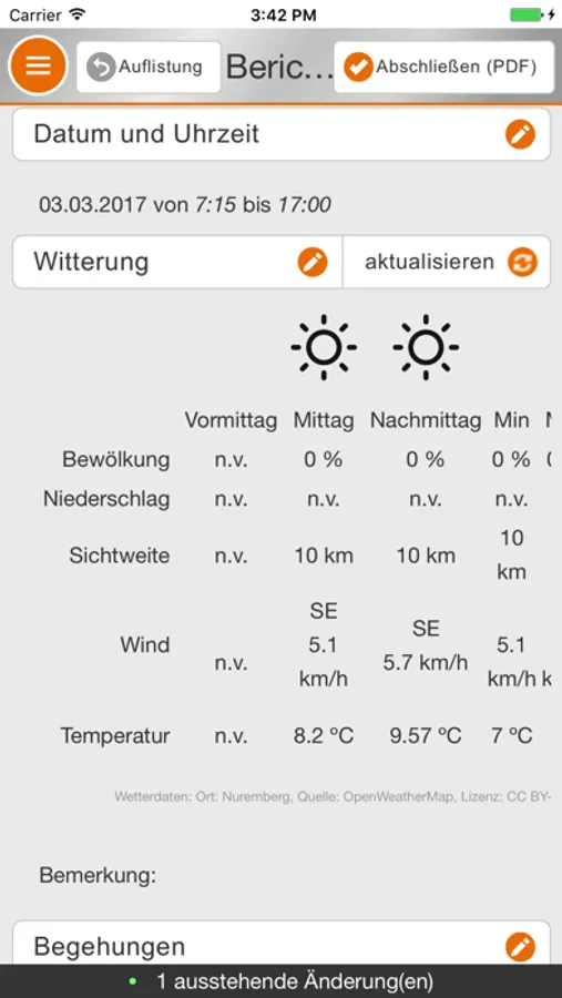 Der Service Bautagebuch hebt sich besonders durch die automatisierte Datenüberübernahme von den anderen Services von Open Experience ab. Beispielsweise lassen sich die durchgeführten Begehungen aus dem Service Bau-Mängelmanagement oder die Anzahl der anwesenden Personen aus dem Service Baustellenausweis automatisch übernehmen. Die Witterungsbedingungen werden direkt aus Onlinequellen übernommen. So verbleiben für den Mitarbeiter vor Ort nur sehr wenige Informationen, die er hinzufügen muss.