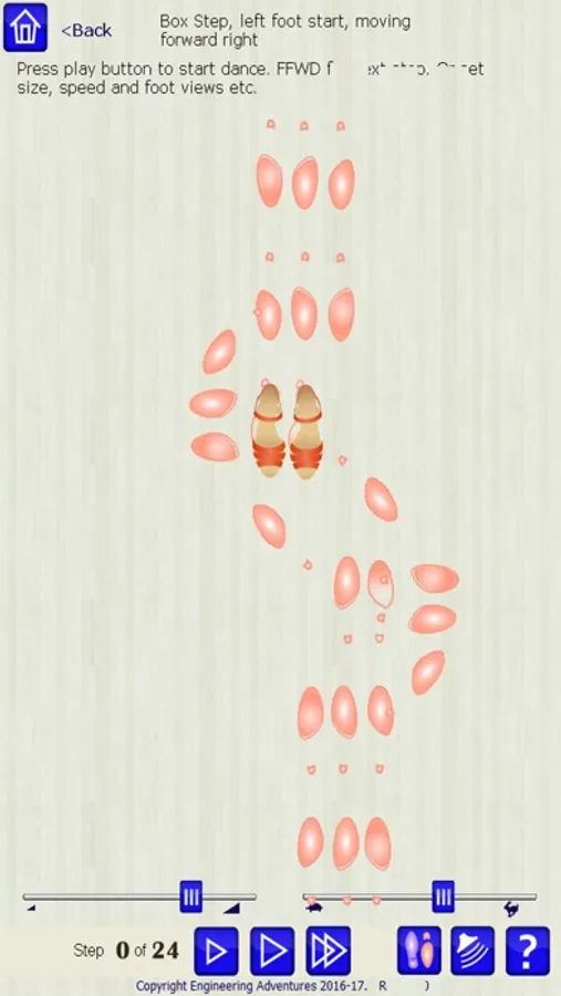 3. Step through each foot position or play the complete dance sequence as one animation.