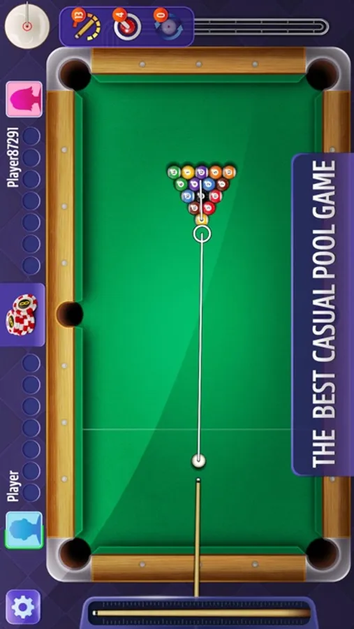Tap and slide to aim. Drag and loose to strike. Ball potted!