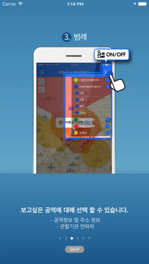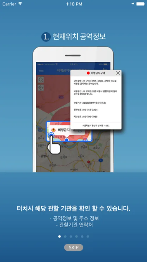 - 유사 앱 대비 정확한 공역 제공: 군작전구역(41곳), 수도권 비행장소(4곳) 등