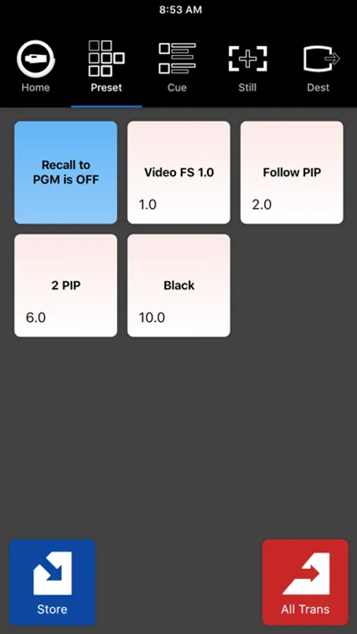 Senses Remote for Barco E2 & S3 Switchers allows you control over your EventMaster-compatible vision switcher from your iPhone or iPad screen.