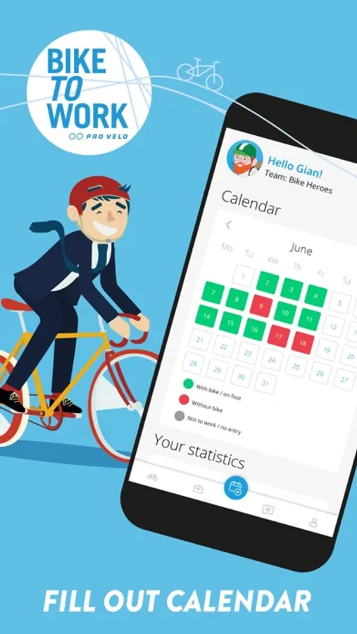Mit der bike to work App hast du jederzeit Zugriff auf deinen Kalender. Trag direkt nach deiner Velofahrt die Kilometer in deinen Kalender ein. Prüf, ob du für die grosse Verlosung qualifiziert bist und sieh, wie viele Kilometer dein Betrieb zurückgelegt hat. Zudem kannst du deine zurückgelegte Strecke messen und automatisch im Kalender eintragen.