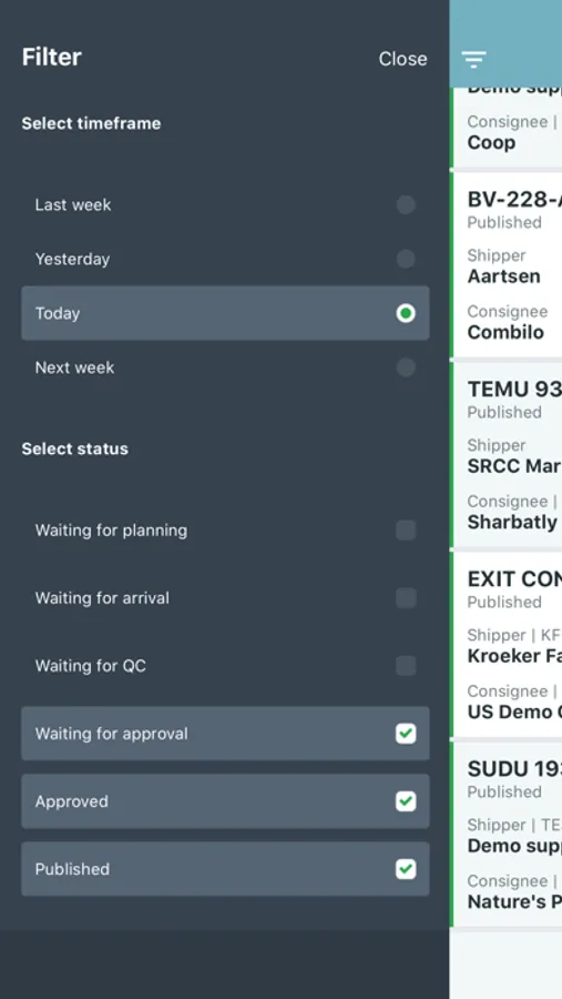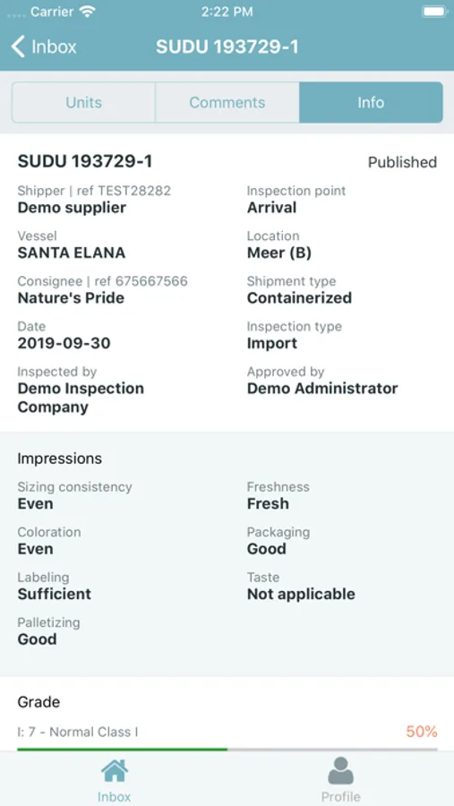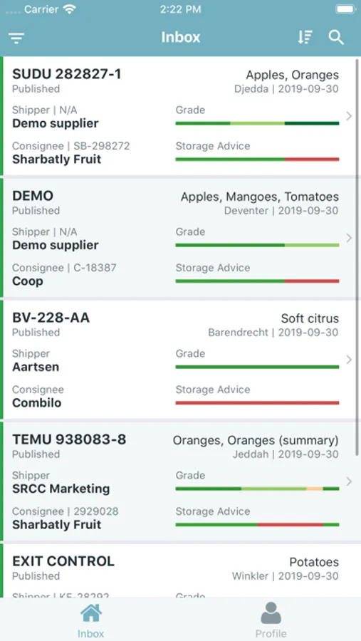 The QC One app enables you to view, approve and publish quality reports. The app informs you in case reports meet your predefined alerts. Keep track of your consignments wherever you are.