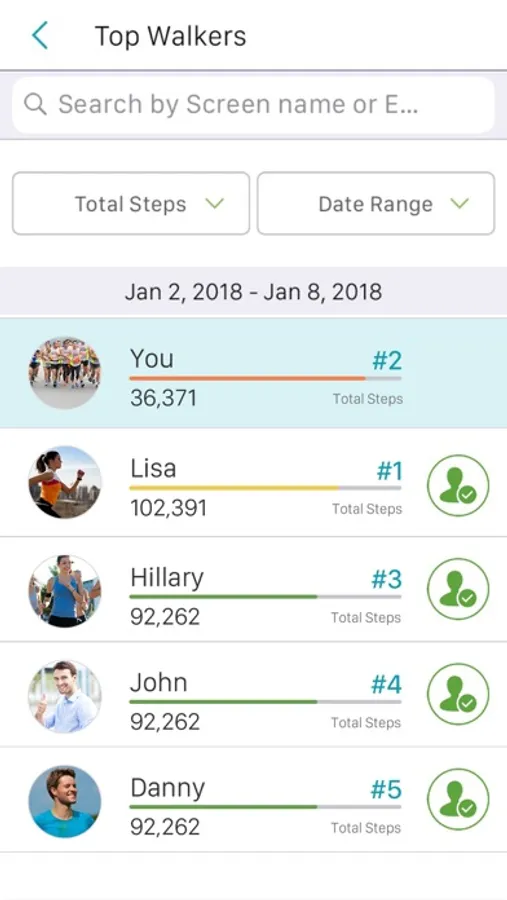 - Participate in fun team Challenges such as Virtual Walks, Star Wars Challenge, Olympic-style Challenge, and Team Tournament Challenge. Track progress of your team and members of your team.