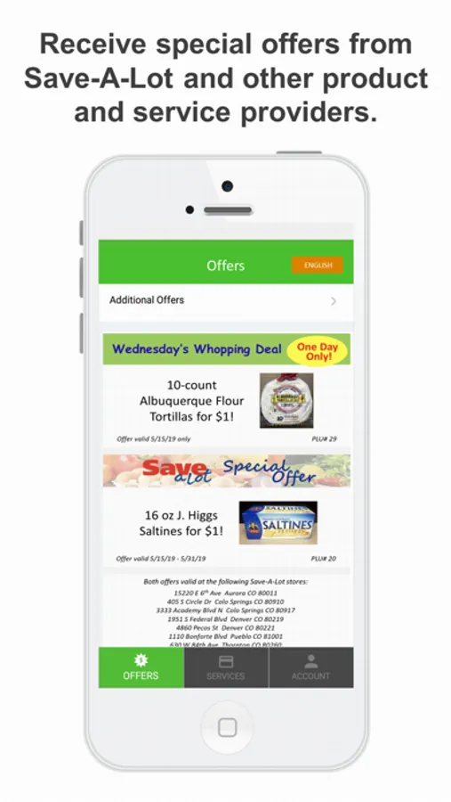 Take advantage of exclusive offers from Save-A-Lot by simply showing the offer on your smartphone to the clerk during checkout. And receive special offers from local health care partners, and other product and service providers.