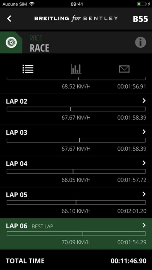 The B55 RACING app enables the user to verify and adjust at a glance the main settings of the Bentley Supersports B55 chronograph, as well as swiftly access its different functions. The smartphone’s memory enables the different chronograph measurements to be stored so that they can be seen, compared or even transferred to other apps. The smartphone’s screen offers unparalleled reading comfort, thus bringing a new dimension to stored data.