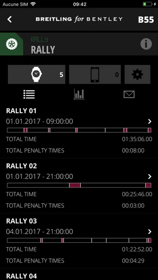 • Access race times (Chrono Rally, Chrono Race or Regularity Rally), view relevant information at a glance and save it for further consultation.