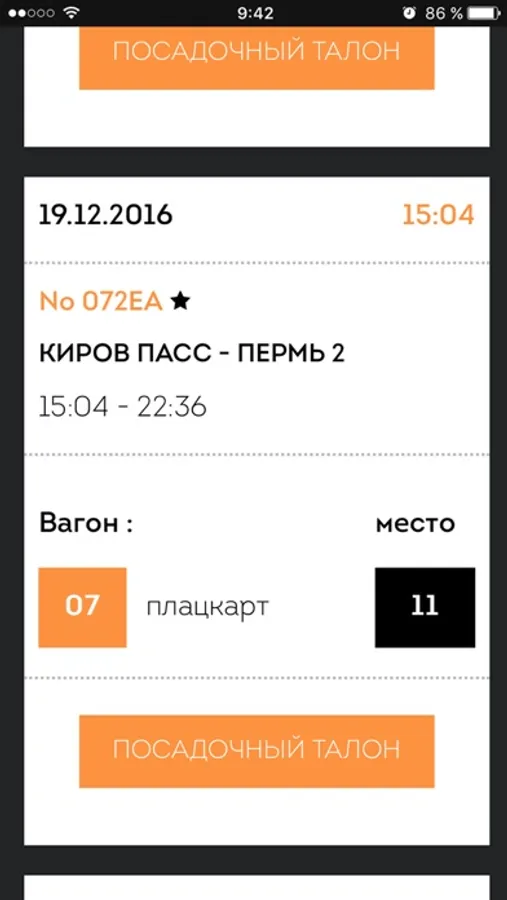 The ticket is instantly available in the app menu after purchase - just show the special 2D-code to conductor after purchase and go boarding the train!
