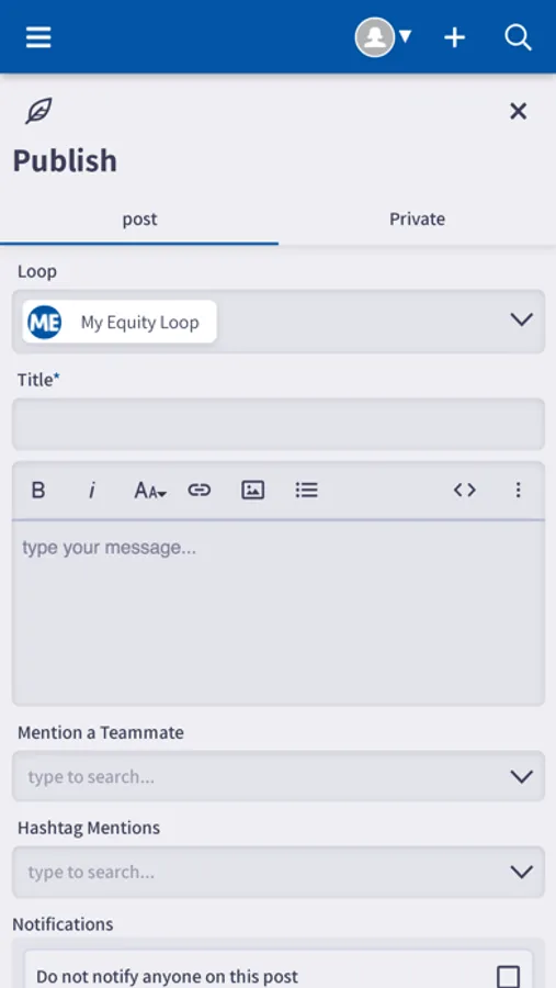 My Equity replaces internal emailing, shared drives, and intranets with a more intuitive, all-in-one communications app accessible via desktop and mobile. Users join a loop or room dedicated to a specific project or job function, start conversations, and create or consume valuable working knowledge. By creating more structure around messaging, My Equity simplifies best practice and information sharing, reduces redundant transactional messaging, and fosters a unique team culture that promotes productivity and teamwork.