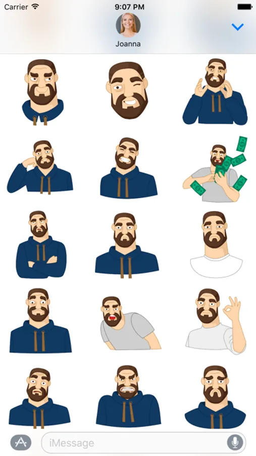 - Tap on the button in the bottom left which looks like four dots – you will see your Bearded Brian stickers there.