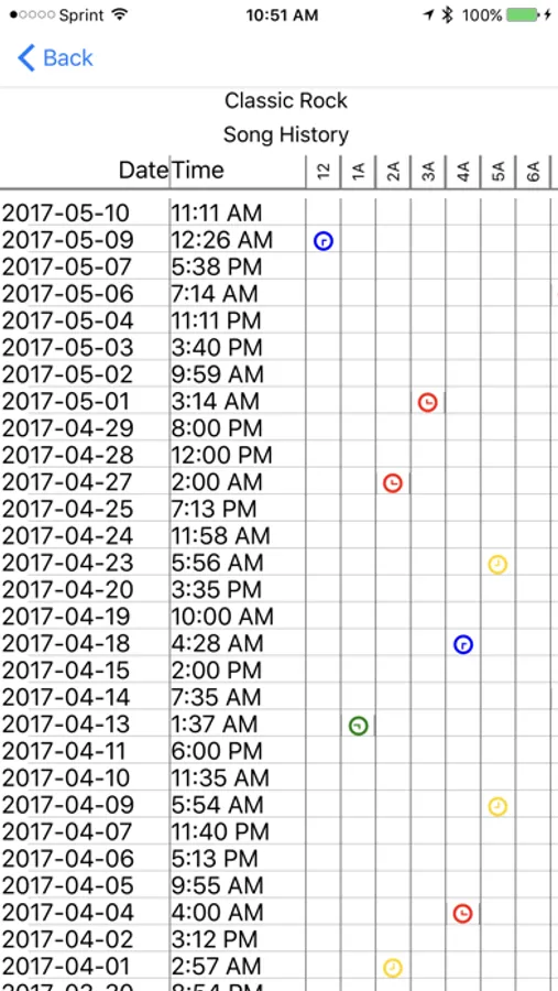 Library features include queries, search, and review of song card information and history graphs. Users can also open the log and be taken to the current date and hour, or change the date and time to edit any other log. They can even look for replacement songs by choosing to see the best testing songs, creating a query to search for something more specific, or simply moving an element to a new position.