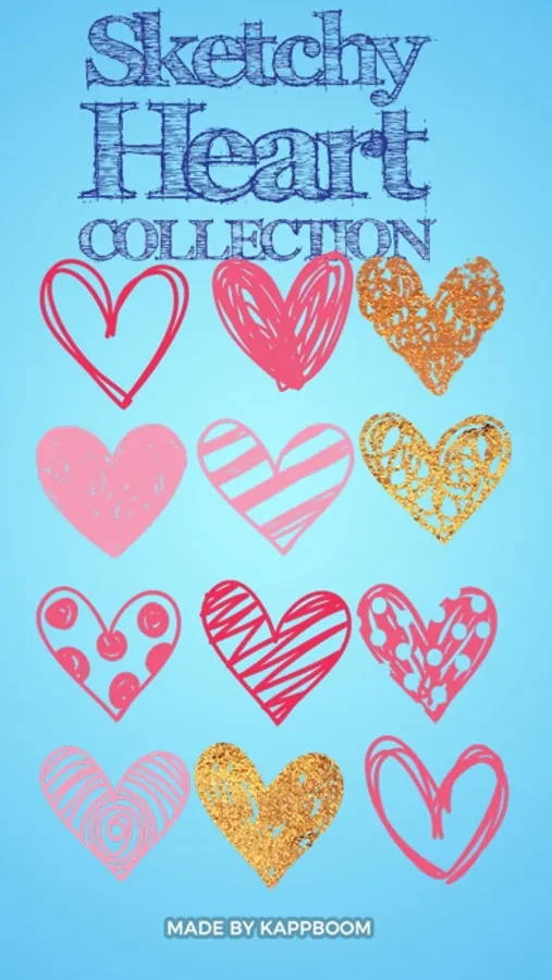 "Sketchy pink hearts stickers"