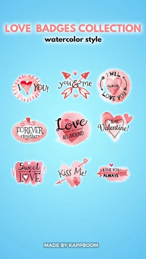 "Watercolor love badges stickers"