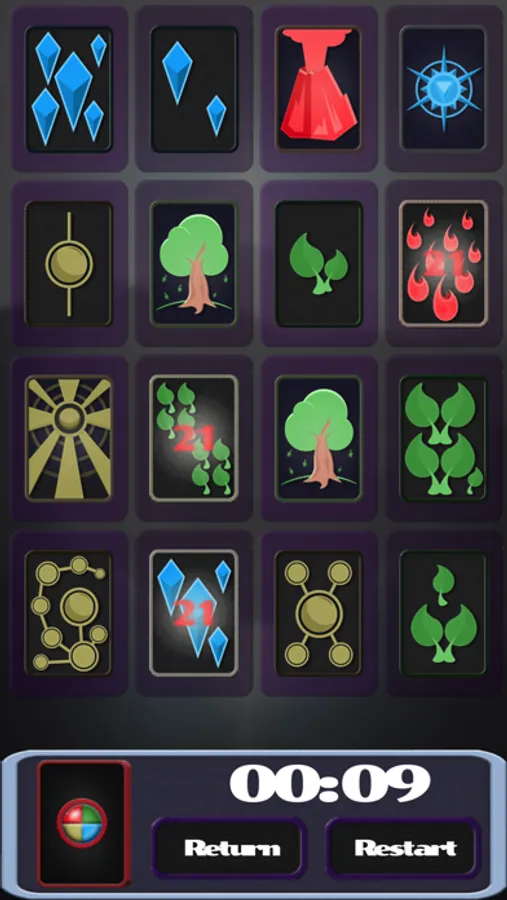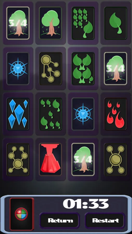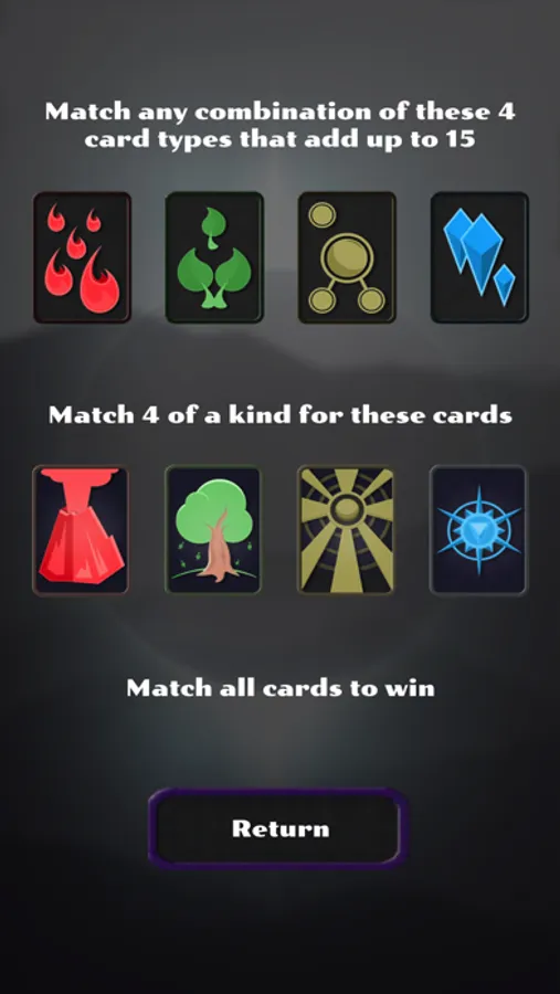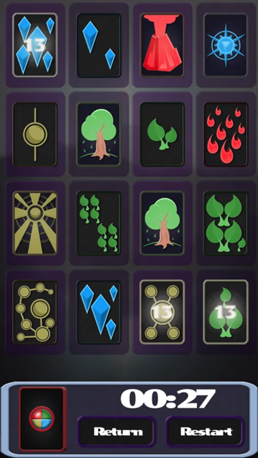 XV is a card game where you play combinations of different elements that add up to fifteen. There are also special cards such as trees and volcanoes that must be played in a matching set of four. How quickly can you clear the board of all the cards?