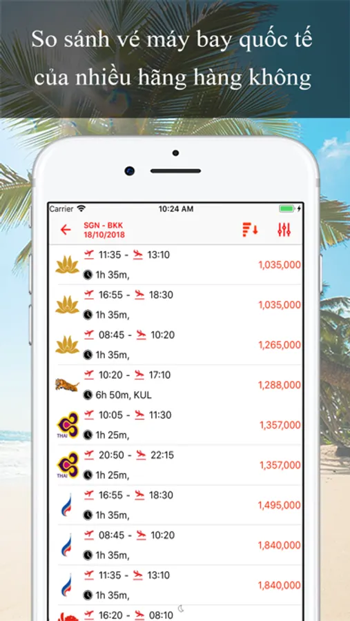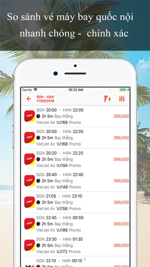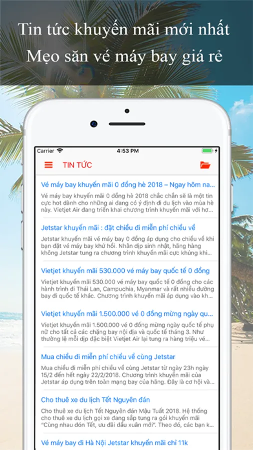 Vé máy bay khuyến mãi giá rẻ, tìm chuyến bay, đặt vé máy bay và giữ chỗ. App vé máy bay được nghiên cứu và phát triển từ đầu năm 2010 nhằm mục đích hỗ trợ người dùng cuối thuận tiện hơn ở thao tác tìm chuyến bay, đặt giữ chỗ. App vé máy bay phiên bản 2017 thêm mục săn vé máy bay giá rẻ trong tháng, gọi xe, cho thuê xe du lịch (cho thuê xe hoa), book phòng khách sạn.