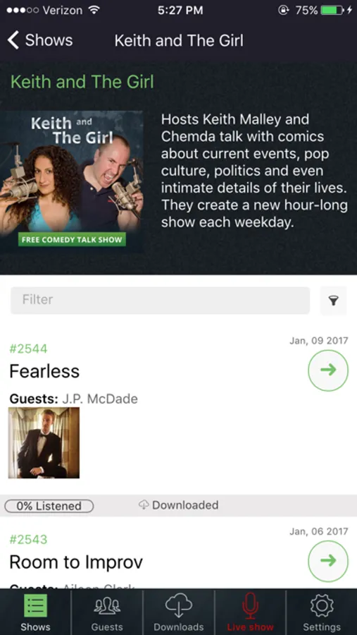 Keith and The Girl (KATG) is a comedy talk show. Hosts Keith Malley and Chemda talk with comedians about current events, pop culture, politics, and intimate details of their lives.