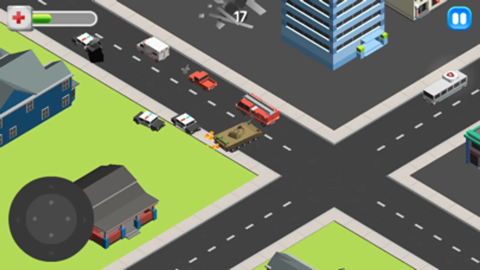 Smash and destroy the town with powerful tanks! Attack and destroy every car and building in your way. The police and the army will try to stop you from this madness. Try to avoid their bullets and rockets while smashing the city.