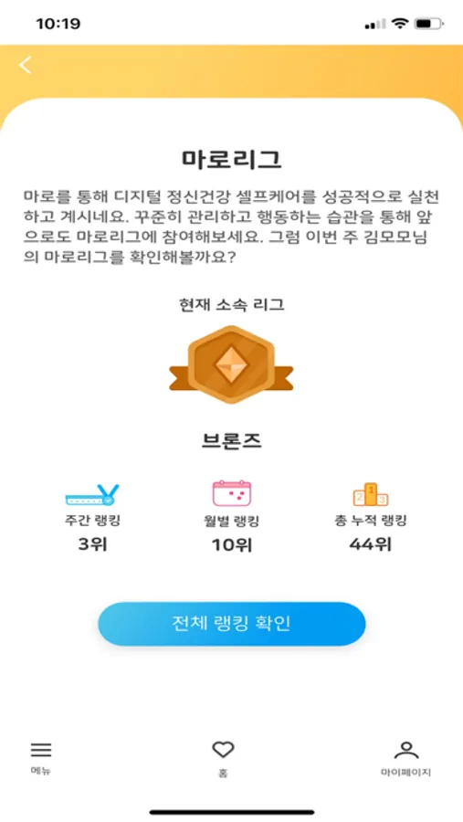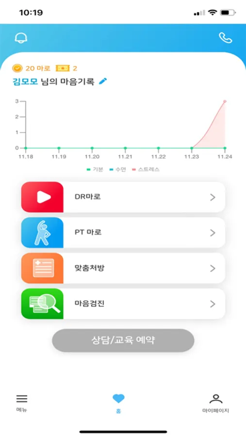 포인트와 리워드, 랭킹과 카드수집 등 게임이론을 기반으로 한 마로의 자율관리 서비스를 통해 마음건강자산을 꾸준히 쌓아 나가 보시길 바랍니다.