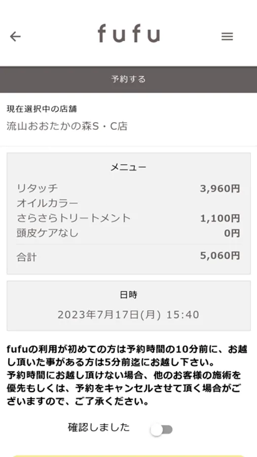ヘアカラー専門店fufuの簡単予約アプリが登場!