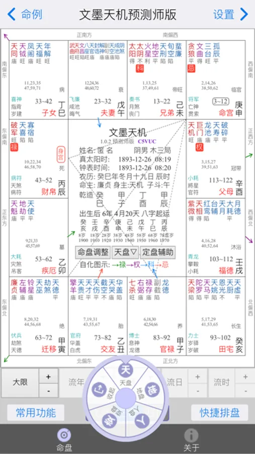 5. 提供方便快捷的大限、小限、流年、流月、流日和流时切换功能,大幅简化交互复杂度。