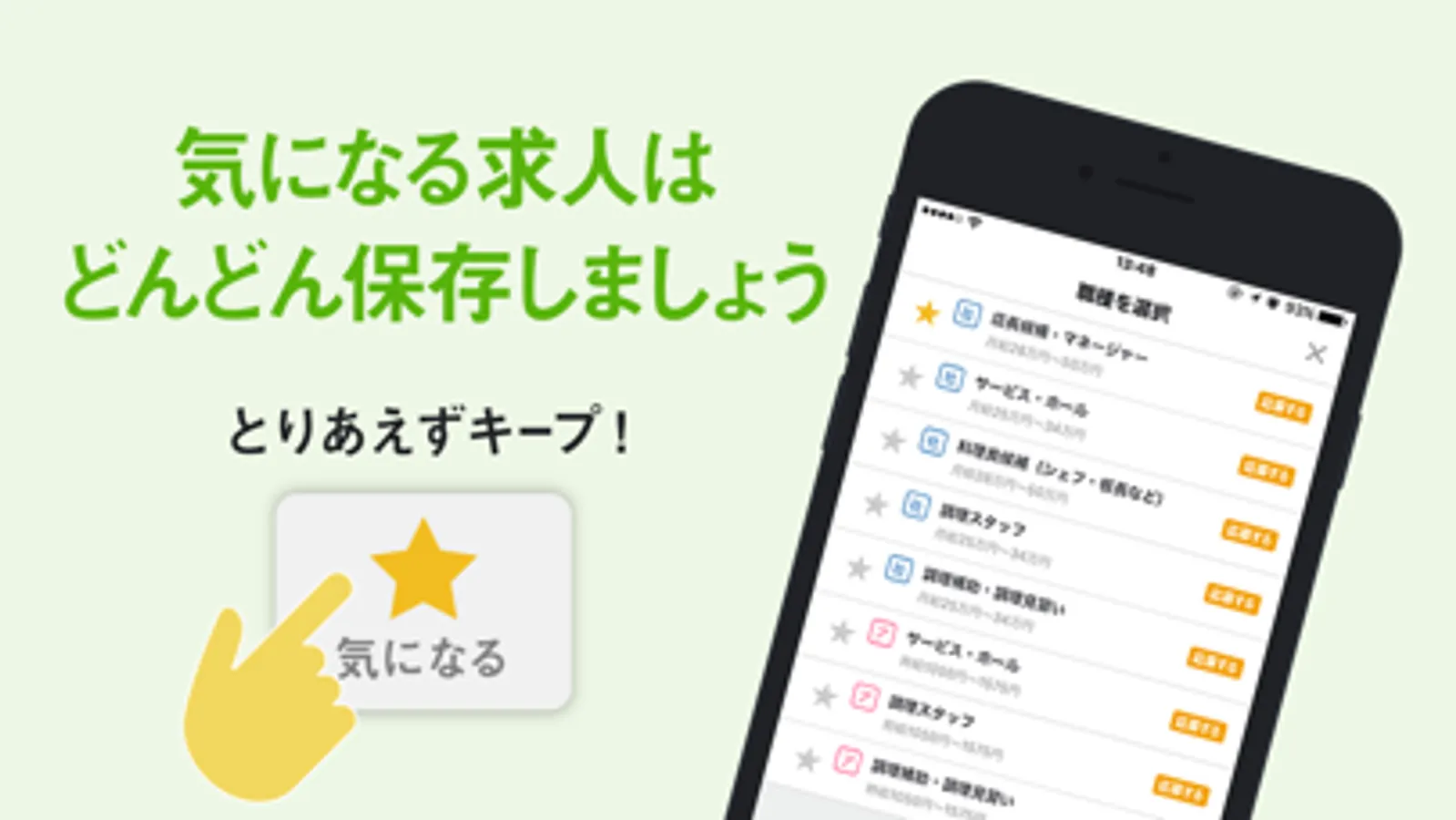 気になった求人情報は、リストに保存して後からチェックしたり応募したりすることができます。
