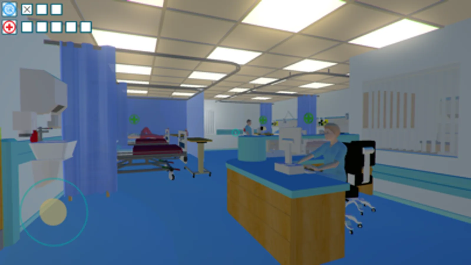 Nursing Skills Lab provides a virtual environment to guide nursing students through the typical layout and features of a hospital ward. Navigating the environment and discovering various information points provides an overwiew of the environmental features and technical processes required for nursing training.