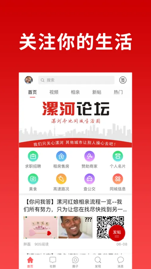 漯河论坛APP是一款集漯河生活、便民信息、商家服务为一体的手机客户端。是专为生活在漯河网友提供找工作、找房子、查违章、找服务、看热门、交朋友、聊话题、玩摄影、问题求助信息的漯河本地生活服务平台。生活在漯河,爱上漯河论坛APP!