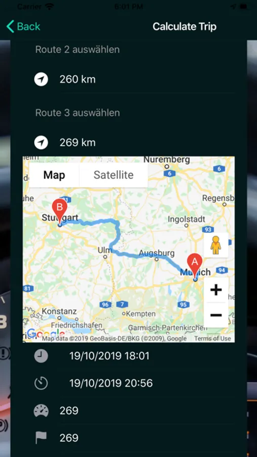 It just needs an app and the journey can begin and they are tracked by GPS. The reason for your trip can also be chosen later, either as free text or from a list of your own favorites. Your position and addresses are automatically recognized and entered or selected from your address list (which can also be created manually).