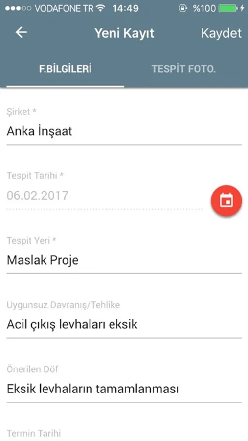 Saha denetim kayıtlarınızı fotoğraf ve belgeleriyle mobil cihazınızda saklayabilirsiniz.