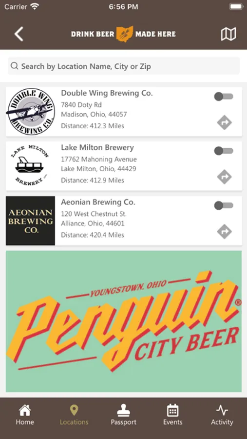 • Location-based tool to identify nearby breweries